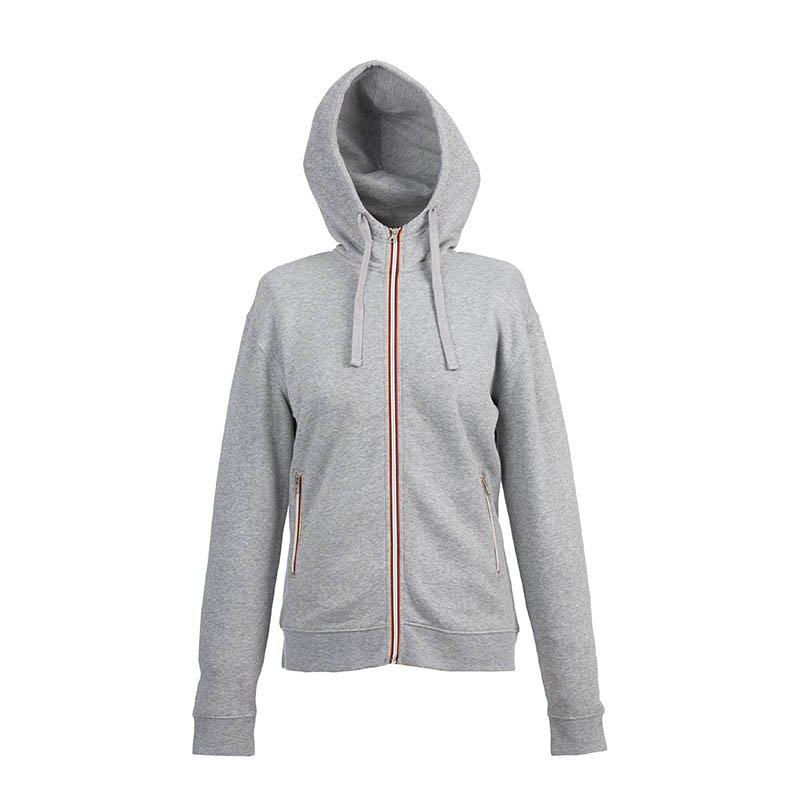 "Las Vegas Lady Dark Grey - code: 992851 Cotton – polyester sweater - Lined hood - High collar - Full zip with colored tape (yellow/red/black) - Two pockets with zip - Reinforced tape inside neck - Ribbed cuffs and bottom - Stiching Hood Weight: : 280 g"