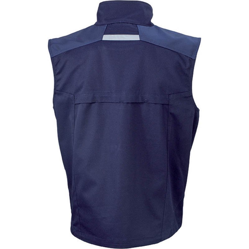 Pánská pracovní vesta James & Nicholson Workwear Vest.Profesionální vesta s vysokou kvalitou vybavení..Vnější látka: 65% polyester, 35% bavlna.Vnější materiál 2: 100% polyamid.Robustní a odolná směsová tkanina.Stojací límec s měkkým rounem uvnitř.Ramenní