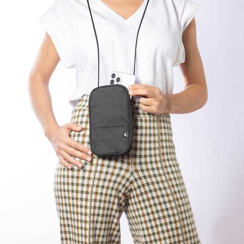 NOVINKA 2025. Brašna přes tělo na smartphone s otevřenou kapsou na přední straně. Vyrobeno z recyklované bavlny s nastavitelým popruhem z polyesteru RPET. 280 gr/m2.