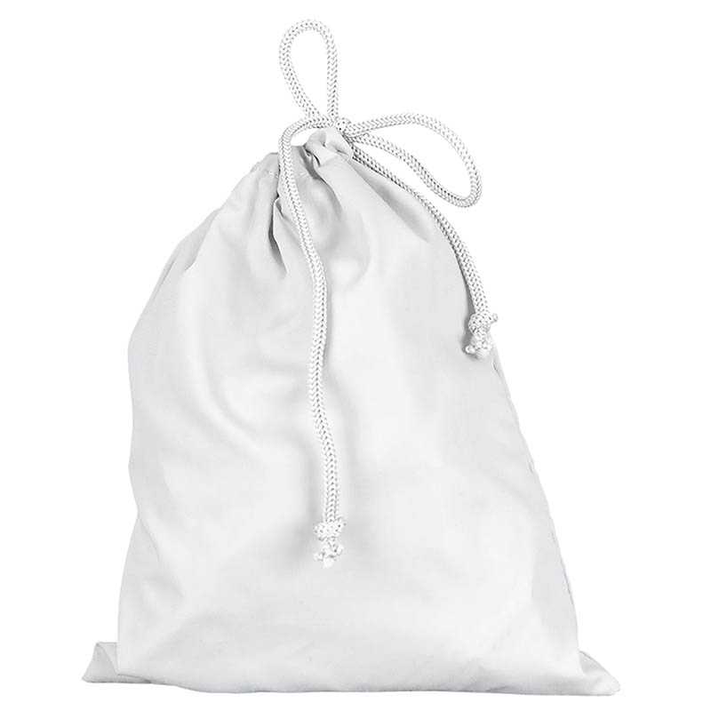 Bavlněný stahovací vak s bílými bavlněnými šňůrkami.