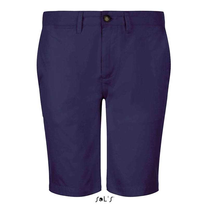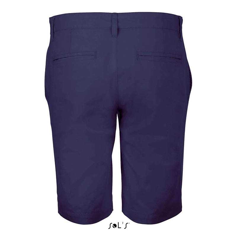 Two-Tone Bermuda Shorts. Made of lightweight bi-stretch Ripstop fabric with water-repellent finish ensuring quick-drying properties and exceptional comfort in warm conditions. Contrasting back panel (excluding navy blue) for added visual appeal. Button-and-zipped flap fastening, side elasticated waistbands and belt loops for a better adjustment and a comfortable fit.Two vertical hip pockets, two side pockets and two back pockets, all with zip closure and piping, for convenient and secure storage. Suitable marking methods: screen printing, transfer printing, vinyl application, embroidery. Ideal as workwear, summer uniforms and also suitable for trekking and outdoor activities.