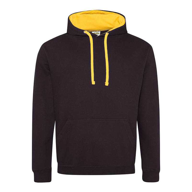Kvalita.50 % Ringspun bavlna - 50 % polyester.Styl.Žebrovaný spodní lem a manžety.Vsazené kontrastní rukávy.2 klokaní kapsy.Kapuce s barevně sladěnou šňůrkou.Rovný střih.Trubkový střih.