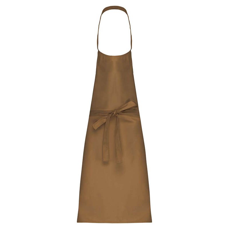 Elegantná zástera na varenie z bavlny (340 g / m2) s dvoma prednými vreckami a nastaviteľným pásom z farebného kontrastného PU materiálu.