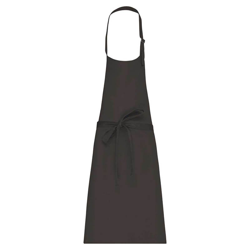 Elegantná zástera na varenie z bavlny (340 g / m2) s dvoma prednými vreckami a nastaviteľným pásom z farebného kontrastného PU materiálu.
