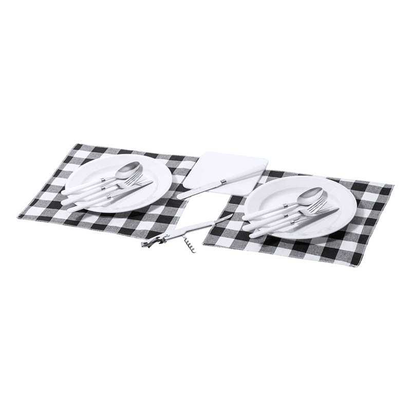 13dílná pikniková sada nádobí a příborů pro 2 osoby v přepravním kufříku z polyesteru 600D RPET na zip.