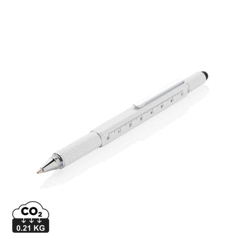 Multifunkční pero s pravítkem (7 cm), vodováhou, šroubovákem, stylusem a kuličkovým perem s modrým inkoustem pro psaní až 400 m textu. Vyrobeno z vysoce kvalitního hliníku.