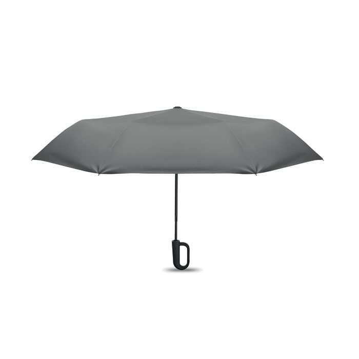 Skládací 21'' větruodolný deštník s černě pokovenou tyčí. Sklolaminátová žebra. Panely z pongee 190T RPET. Rukojeť s karabinou a pogumovanou úpravou. Automatické otevírání a zavírání. Včetně pouzdra.