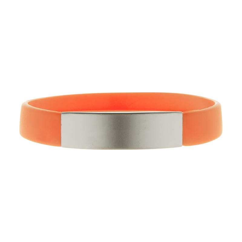 Silikonový náramek s hliníkovou stříbrnou ploškou.