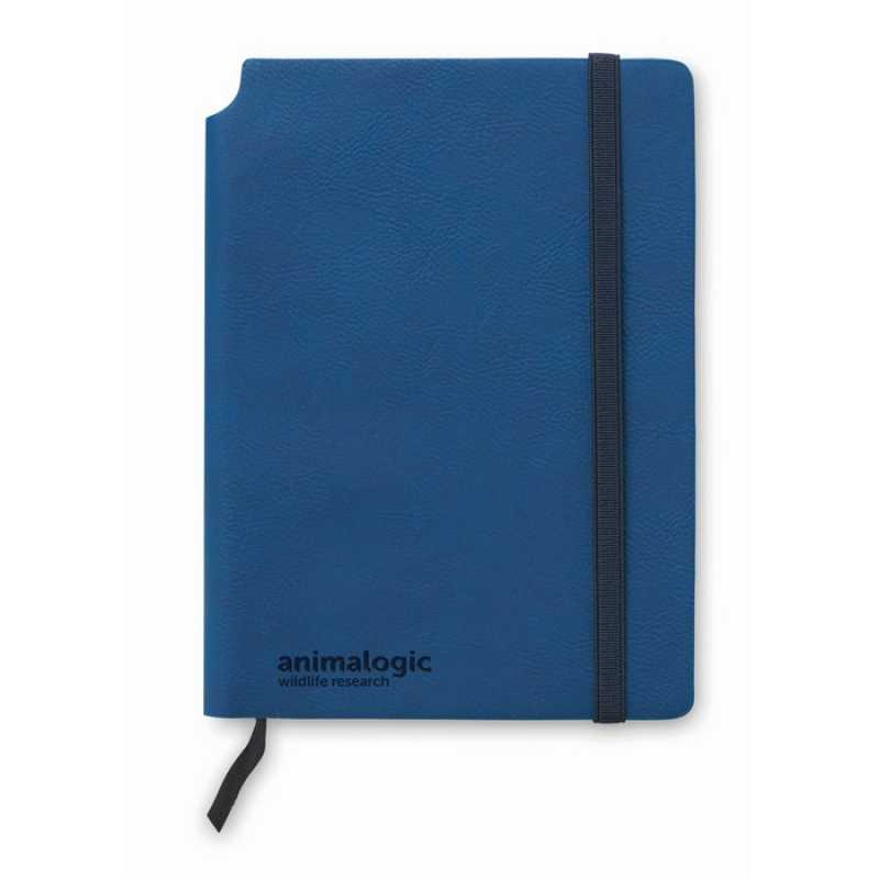 Zápisník A5 s měkkými PU deskami. 160 linkovaných stránek (80listů) recyklovaného papíru. Gumička a záložka ve stejné barvě. Vnitřní kapsa na zadní obálce. Držák propisky ve hřbetu.