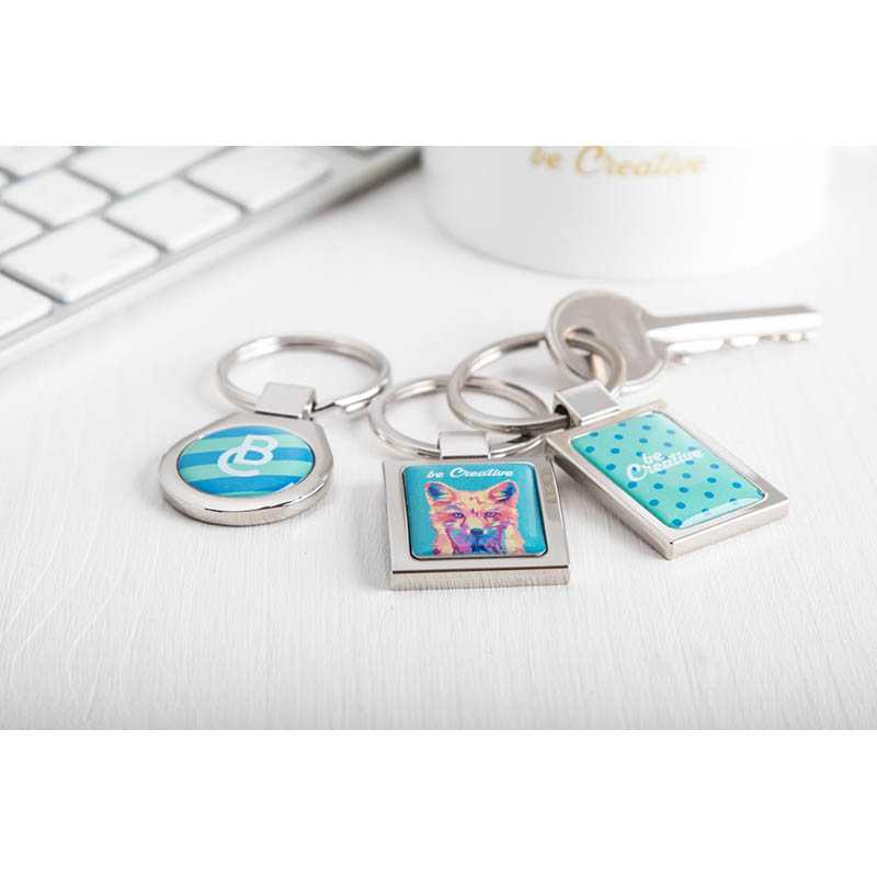 Obdélníkový přívěšek na klíče v barvě gun metal s oboustranným lesklým povrchem.