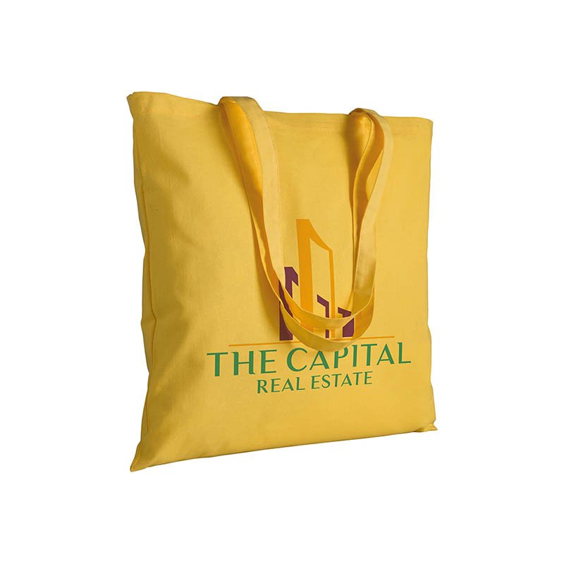 Coloured shopping bag with long handles. Made of unbleached and eco-friendly cotton material (120 g/m2).