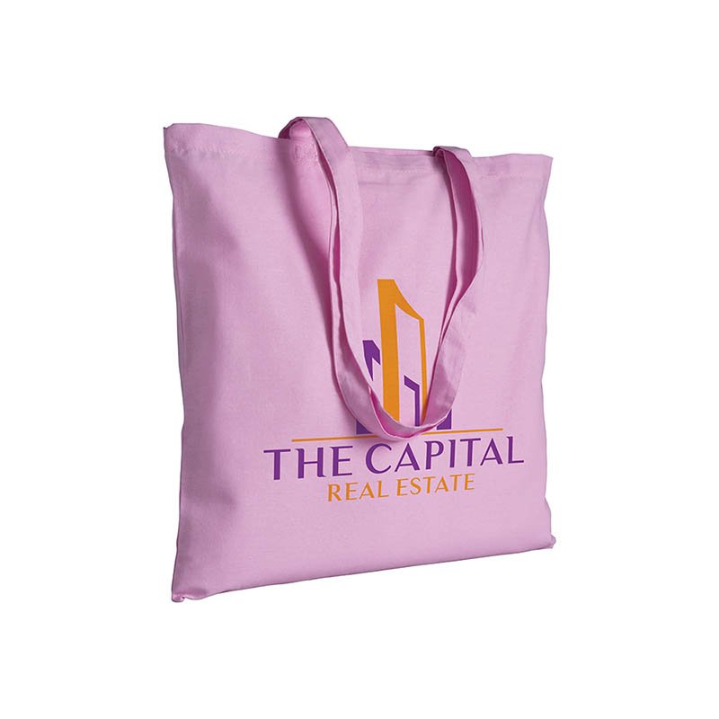 Coloured shopping bag with long handles. Made of unbleached and eco-friendly cotton material (120 g/m2).