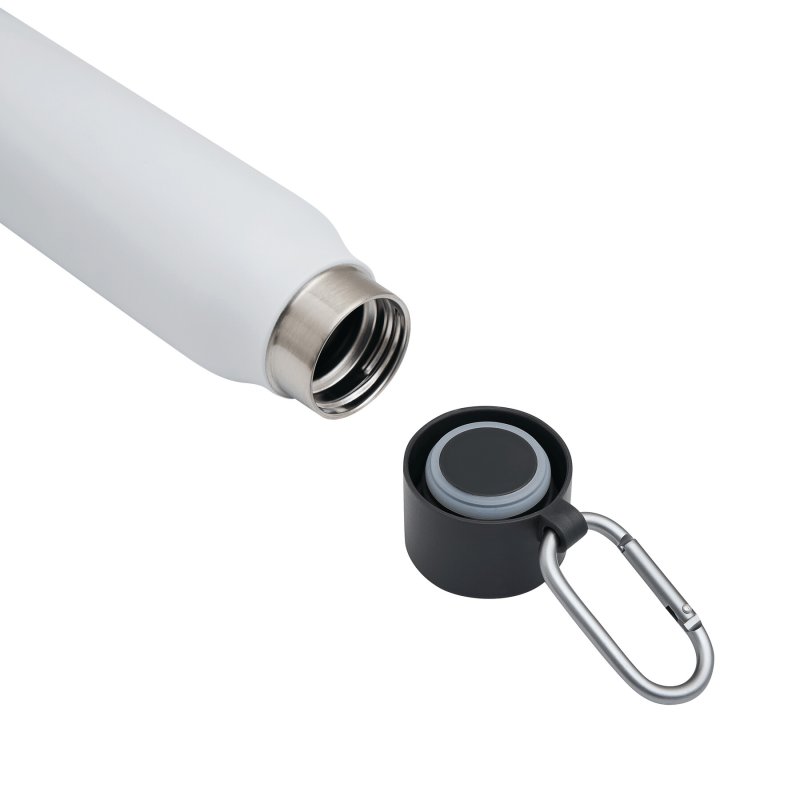 NOVINKA 2025 XMASS. Vacuum drinking bottle ALPINE PEAK, double-walled: inside made of recycled stainless steel, outside made of stainless steel, plastic lid with secure screw cap, silicone sealing ring, and carabiner (the carabiner is NOT suitable for cli