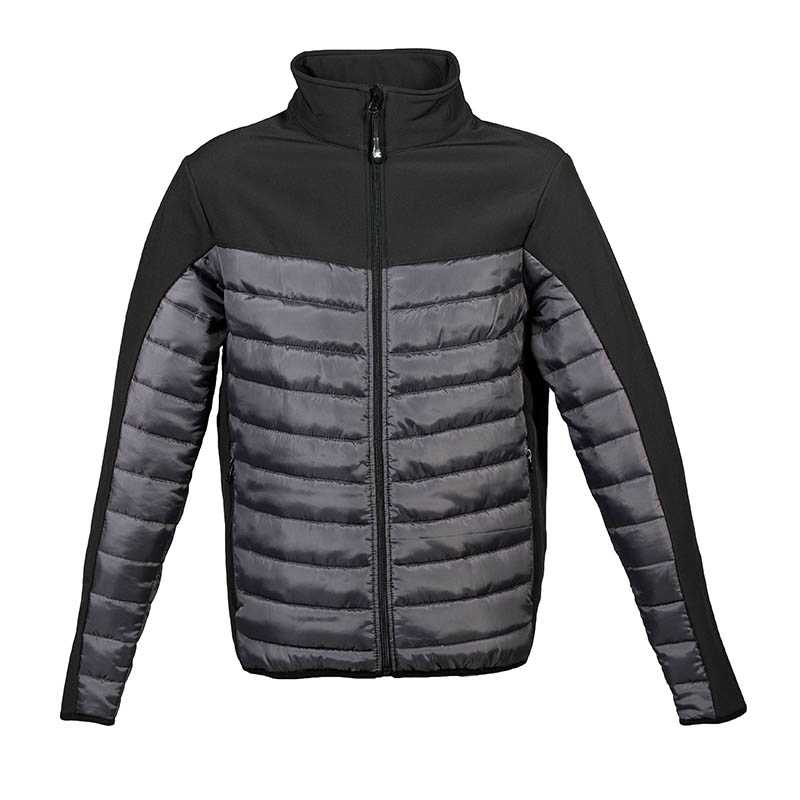 Jacket in composite fabric - Body and lower part of the sleeve in 100% in polyester 300 T cire, with soft polyester padding - Shoulders, upper part of the sleeve, sides and upper part of chest and back in softshell two layers, with polar fleece inside - YKK zippers - Two pockets with zip - Elasticized fabric on cuffs - Elasticized fabric at the bottom