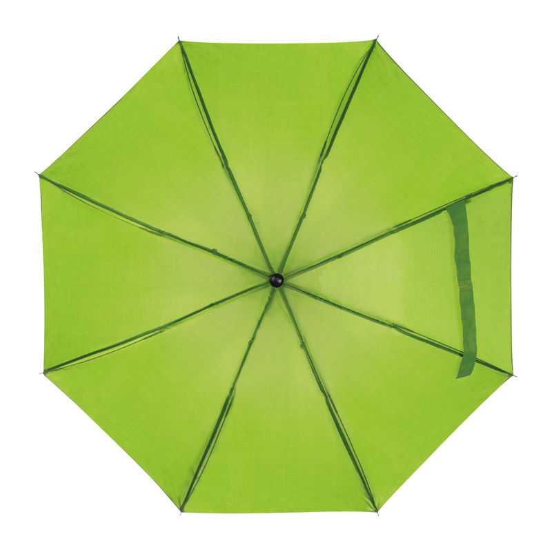 Polyester (190T), foldable umbrella with eight panels and Velcro fastening. Including nylon sleeve.