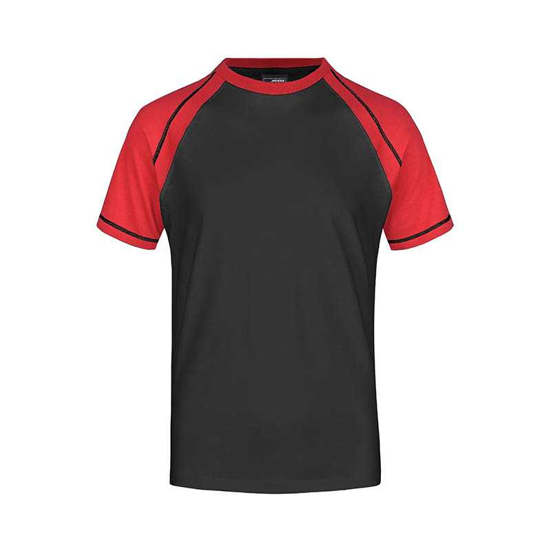 Pánské triko James & Nicholson ve sportovním dvoubarevném vzhledu..Tričko je vyrobené ze 100% bavlny..Vysoce kvalitní tkanina.Raglánové rukávy a pruh kolem krku v kontrastní barvě .Dvojitý steh, ploché švy na rukávech .Podlepený výstřih pro pohodlí, boční