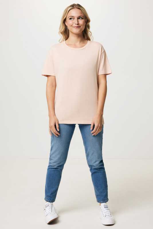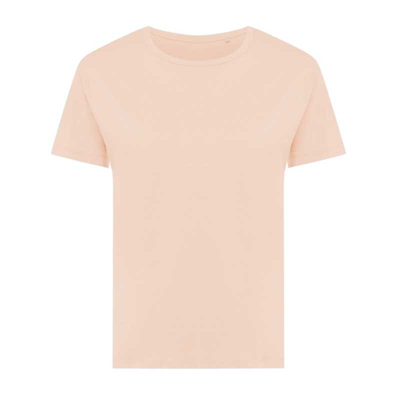 Soft combed cotton T-shirt for women with a very light feel and a fashionable rolled collar. The fine structure gives these T-shirts a premium look and high elasticity.rolled self-fabric collar, double stitched hem and sleeve hems, fashionable wide neck drop, neck tape, side seams, small size label in the collar, care label in the side seam