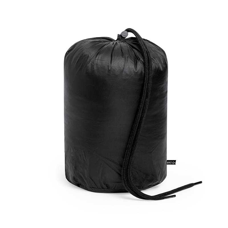 NOVINKA 2025. Unisex jacket in warm and soft 100% RPET material, with adjustable hood with elastic straps. In extra light feather effect material, water resistant and windproof. With inner padding, zip on collar with placket and strap on puller, as well as large side pockets with zip. Including a practical carry pouch with adjustable drawstring and RPET logo label. Available in a wide range of colours and sizes XS, S, M, L, XL, XXL.RPET material is made from recycled plastic, thus promoting the reuse of plastic waste and helping the sustainability of the planet.