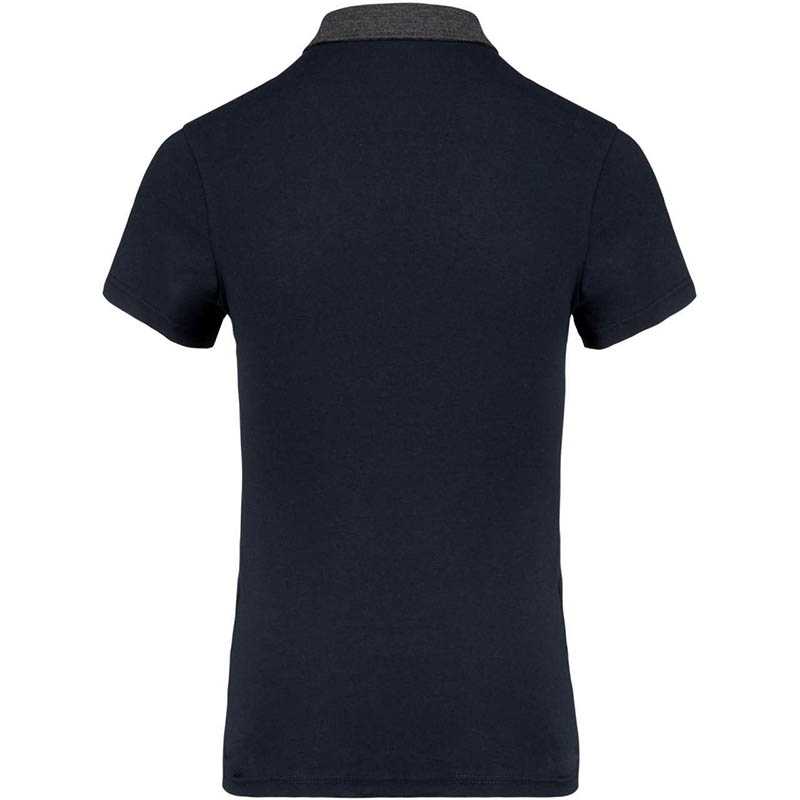 100 % předsrážená piqué bavlna (Oxford šedá: 90 % bavlna/10 % viskóza).Kontrastní žebrování na krku a manžetách.Kontrastní podšitý průkrčník.Kontrastní vnitřní léga s 3 knoflíky.Úprava na lemu dvojitou jehlou.