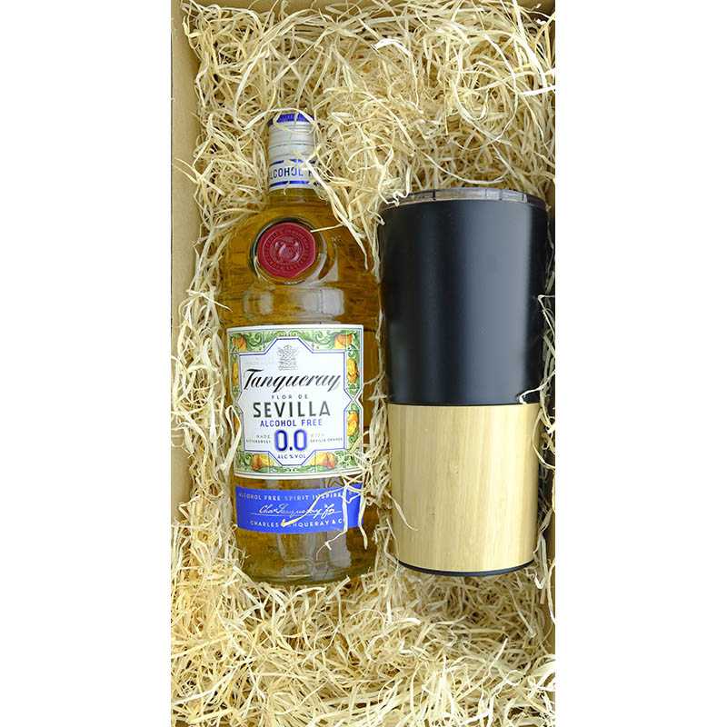 Darčeková krabica > prírodná > 36,5x20x9,5 cm, Termohrnček Cesena > čierna, Nealkoholický gin, Tanqueray Flor de Sevilla Alcohol Free, 700 ml