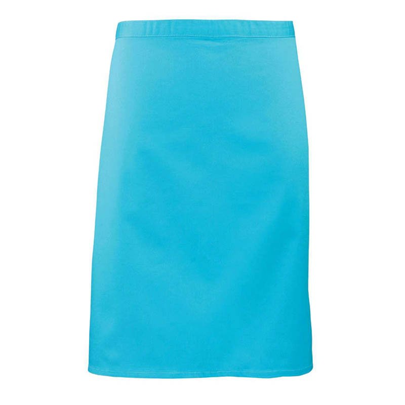 Pocketless Waist Apron with Hidden Straps under the Flap.Made of a sturdy cotton twill fabric blended with polyester for strength and durability.Side straps for optimal waist adjustment, tied with a knot.Double flap waist with contrasting colour piping and two hidden eyelets to get the straps tied and concealed. Hemmed contour for added strength and durability.Suitable marking methods: screen printing, embroidery, transfer printing, vinyl application.Ideal as hospitality clothing and promotional clothing.