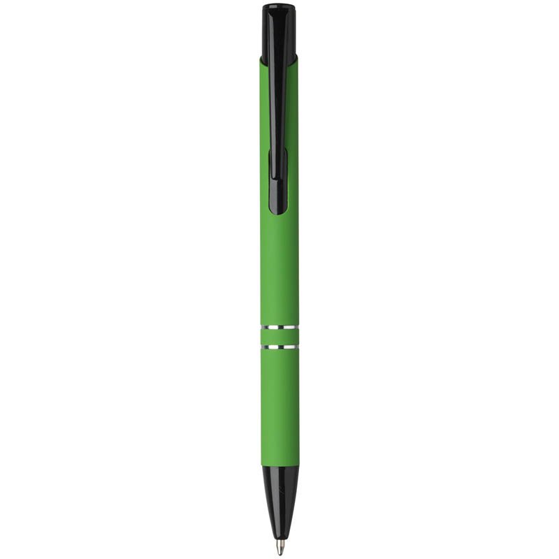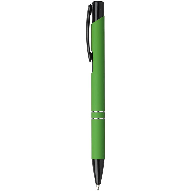 Blue ink ballpoint pen with black painted push button/clip and tip, chrome interlaces. The barrel is finished with a rubberised finish. This pen is also known as the Electra Rubberised pen.