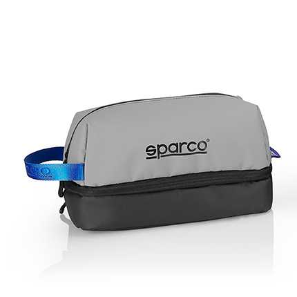 Travel beauty case in 600 D polyester with rubberized coating. Zip opening with dedicated slider with logo. Lower compartment with zip. Measurements: 23x11x14 cm