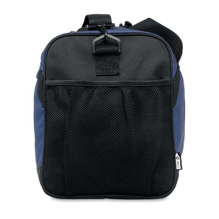 Sportovní nebo cestovní 600D RPET taška s velkou přední kapsou na zip, vnitřní kapsou na zip a nastavitelným odnímatelným popruhem.