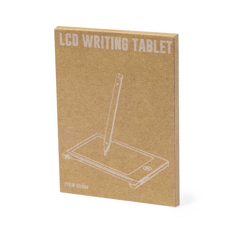 NOVINKA 2025. LCD writing tablet made of resistant material, with magnetic fixing and pen holder. 4.5 inches LCD screen, including stylus, erase button and erase lock. Button battery included and presented in kraft design box.