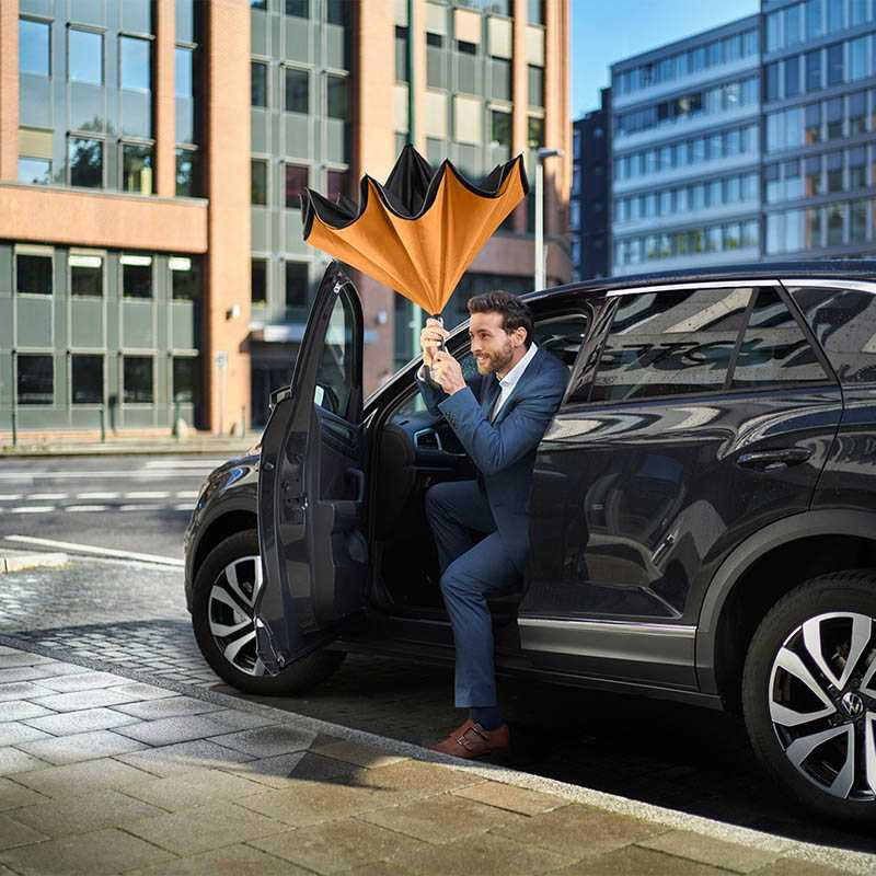 Easy to handle thanks to sliding safety runner, high-quality Windproof PLUS system for maximum frame flexibility in stormy conditions, fibreglass frame opening from the inside out, flexible fibreglass ribs, double cover with lasered ventilation pattern to avoid the build-up of air, trendy reflective piping in silver, soft-touch crook handle with promotional labelling option. Also available as mini umbrella (art. 5415).
