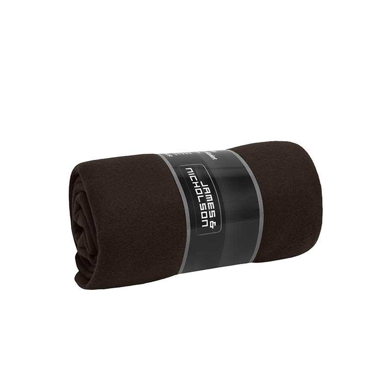 Flísová deka z polyesteru 180 g/m2, strojovo šitá, vybavená popruhom na nosenie. Rozmery rozloženej deky: 120 x 150 cm.