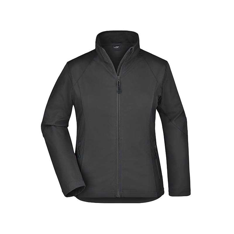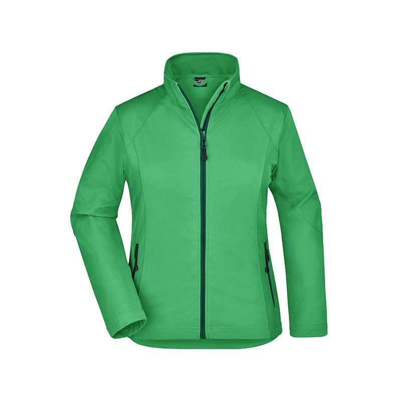 Stylová dámská softshellová bunda James & Nicholson..Vnější materiál: 90% polyester, 10% elastan.Větru a vodě odolná vrstva 3 funkční textilie s PU membránou (2.000 mm vodního sloupce) .Prodyšná (2.000 g / m2 / 24 h) .Měkká, sportovní pružná textilie .2 b