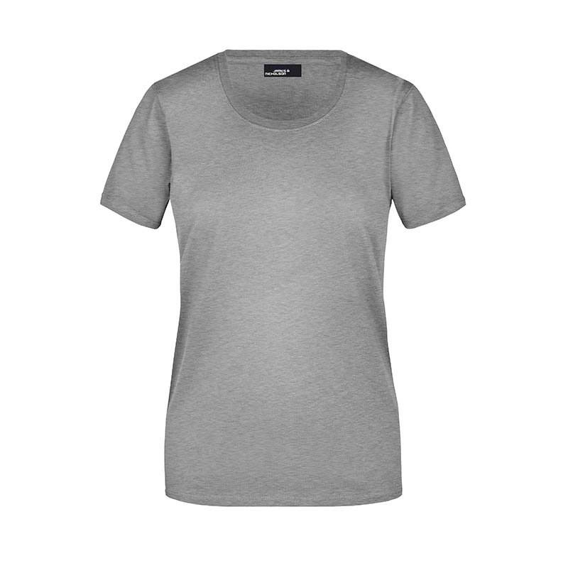Dámské tričko James & Nicholson s kulatým výstřihem..Vnější materiál: 100% Bavlna .Dvojité prošití na ramenou, dekoltu .Hmotnost: 150 g / m2.Balení: 10/100 . (ks v jednom sáčku / celkem ks v kartonu).