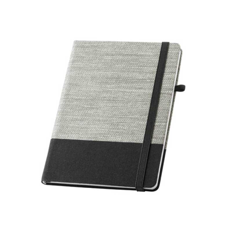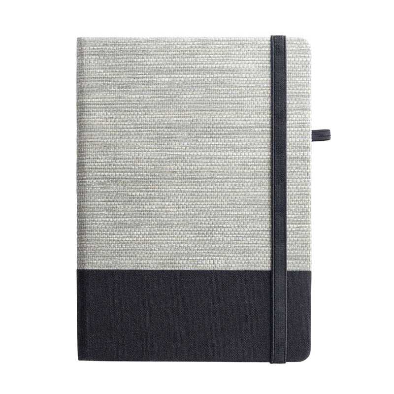 Poznámkový blok ve formátu A5 s tvrdými deskami a zaoblenými rohy, vyrobený z přírodních slaměných vláken a bavlněného plátna. Tento zápisník má 192 linkovaných bílých listů, záložku ve formě stuhy, elastickou gumičku a držák na pero (pero není součástí balení). 150 x 210 mm