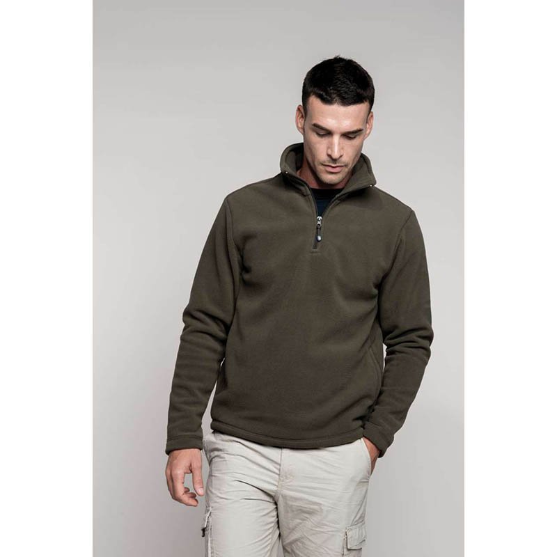 Thermal Sports Sweatshirt.Made of technical plush fabric with an inner brushed for optimal thermal insulation and extra comfort. Stand-up collar with half-zip opening offering versatility for warmth or additional ventilation based on the season.Elasticated piping finish on sleeves´ cuffs for a better fitting and added comfort.Double stitching on bottom hem for added strength and durability.Suitable marking methods: screen printing, embroidery, transfer printing, badges, shields. Ideal as sportswear and workwear.