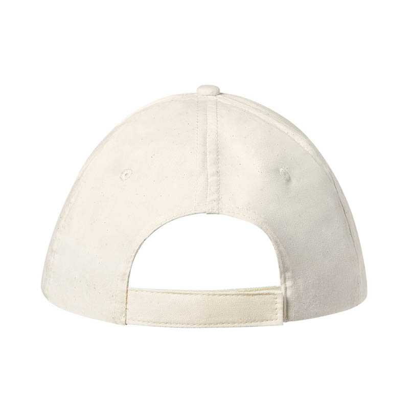 NOVINKA 2025. Nature line 5 panel cap in soft organic cotton of natural finishing. Adjustable velcro closure, with embroidered ventilation holes and material distinctive in label.