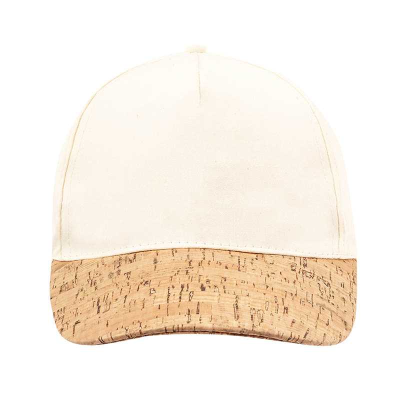 NOVINKA 2025. 5-panel nature line cap made of organic cotton, with a natural cork visor. With adjustable velcro closure.