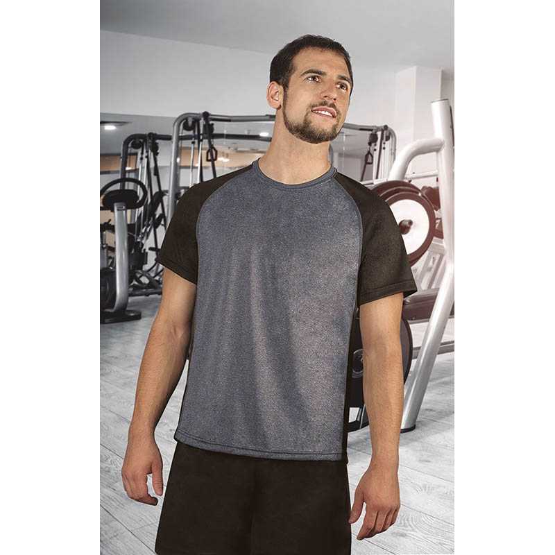 Two-Tone Short Sleeve Crewneck Sports T-shirt. Made of heathered vigore breathable technical fabric, that promotes sweat wicking and quick-drying, ensuring optimal comfort. Split raglan sleeves for enhanced comfort and unrestricted movement. Flat seams on armholes, sides and sleeves for reduced friction and enhanced comfort. Suitable marking methods: screen printing, embroidery, transfer printing, vinyl application. Ideal as sportswear and workout activities.