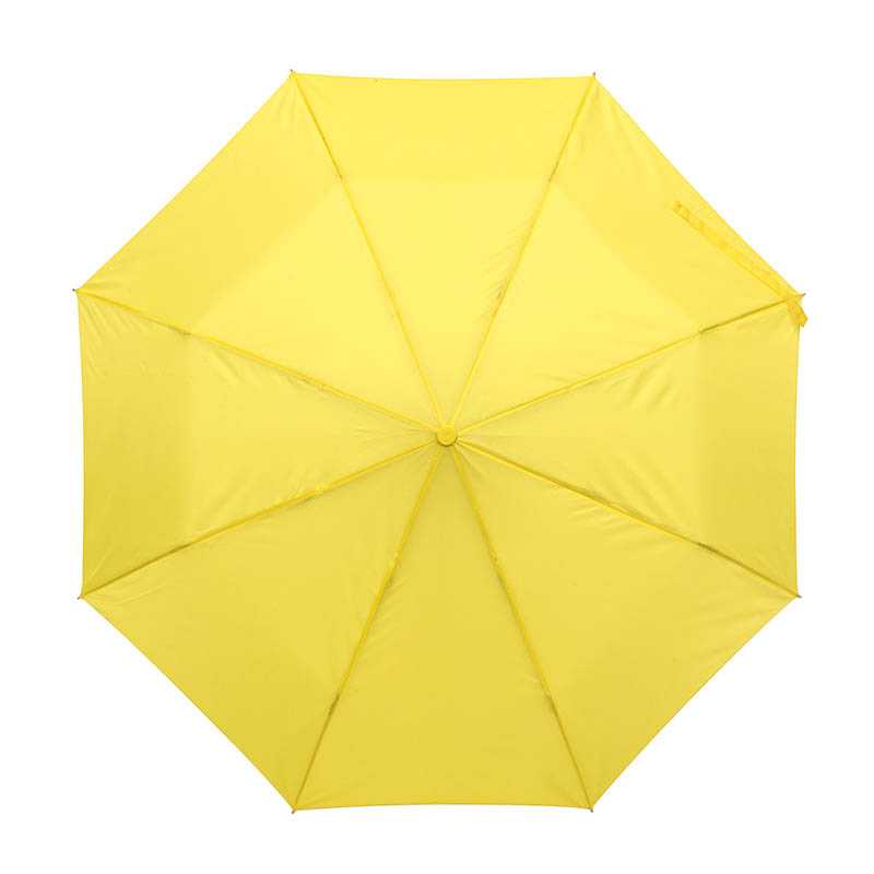 Manuální, větruodolný 3-skládací mini deštník s 6 panely v pouzdru v odpovídající barvě. S kovovým rámem, sklolaminátovými žebry, bambusovou rukojetí a bavlněným řemínkem na ruku. 190T RPET pongee, s výrazným štítkem RPET.