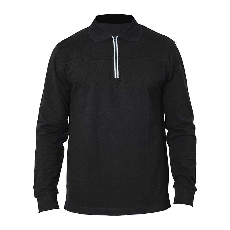 TWO-TONE LONG-SLEEVED POLO SHIRT - 100% combed cotton piqué - Collar, upper body and black sleeves - Ribbed collar and cuffs - Zipper with reflective tape and internal fabric for greater comfort - Contrast internal neck reinforcement tape - Reflective print on the upper back - Side vents with reinforcement tape - Individually wrapped