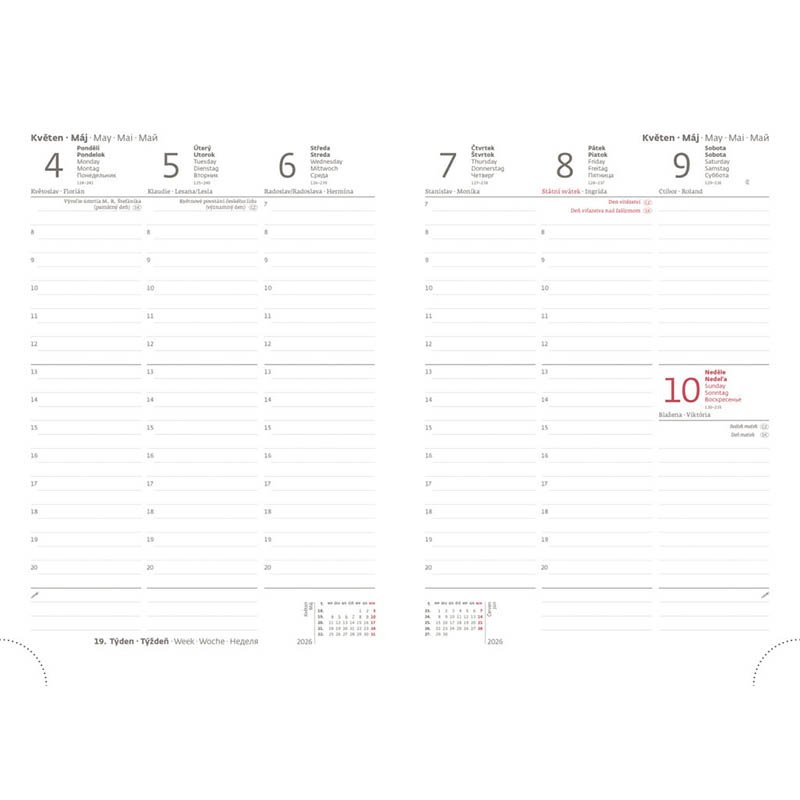 Týdenní diář Twill 2026 v černo-zlaté barvě. Dva povrchy spojené efektním lepením – jednobarevný materiál je doplněný metalickým povrchem s ražbou letopočtu. Diář má zakulacené rohy, poutko na tužku a elastickou gumičku. Týdenní rozvrh s česko-slovenským