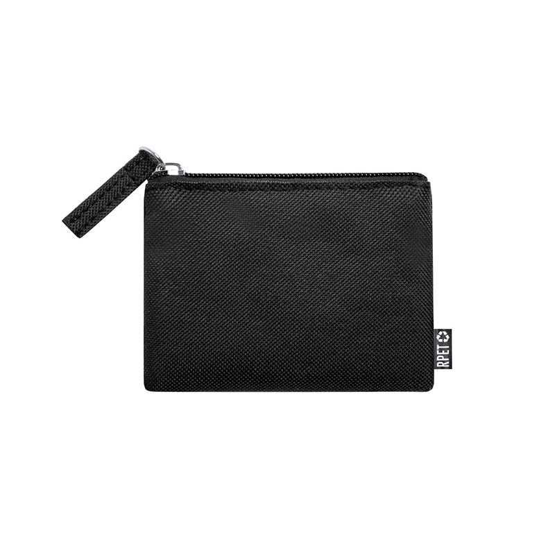 Peněženka na zip ze 600D RPET polyesteru, s etiketou s označením RPET.