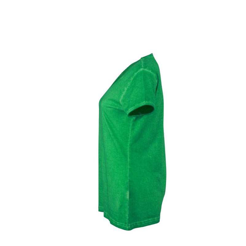 Dámské tričko.Módní tričko s výstřihem do V.Tričko je původně bílé a teprve po ušití je nastříkáno sprejem na požadovanou barevnost.Efekt barvení je velmi zajímavý..Balení: 1/50 . (ks v jednom sáčku / celkem ks v kartonu).