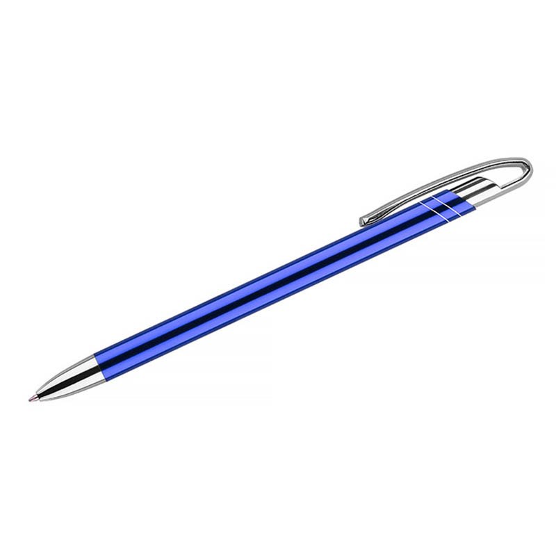 Tenký a hladký kovový pero s metalickým povrchem. Sponka a špičky v stříbrné chromové úpravě. AVALO se od ostatních podobných per odlišuje originálním designem sponky. Válec je ozdoben dvěma skloněnými stříbrnými pruhy. Modrá náplň o tloušťce 0,7 mm.