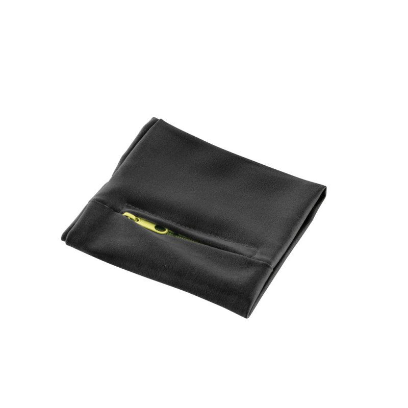 Elastické polyesterové poutko na ruku s kapsou na zip, ideální na vložení malých předmětů a používání během sportů. 100 x 100 mm
