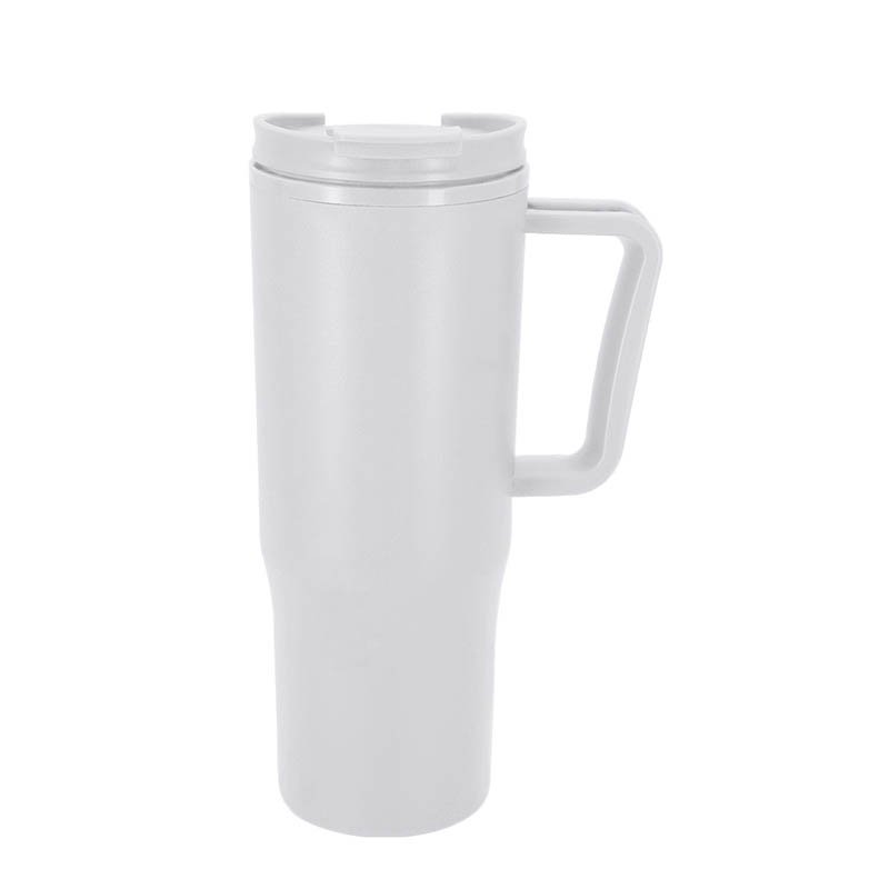 NOVINKA 2025. Insulated Mug made of durable double-walled Recycled PP. Has an 800ml capacity. Lid with easy-open dispenser, including a straw hole. BPA-free. It includes an ergonomic handle . With recycled PP logo. Recycled PP is a recycled and highly recyclable plastic, highly resistant and suitable for a multitude of applications.Food Grade certified, guaranteeing safety when food comes into contact with the material used to manufacture the product.