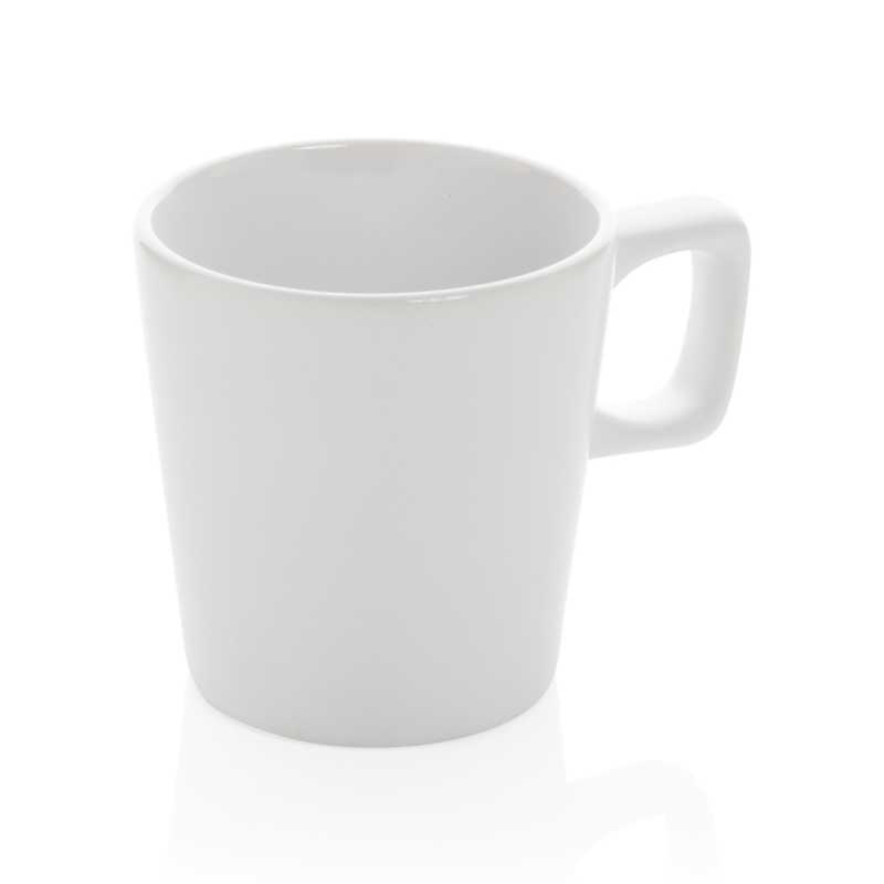 Ceramic coffee mug with integrated spoon (300 ml) (sold per 36 pieces).