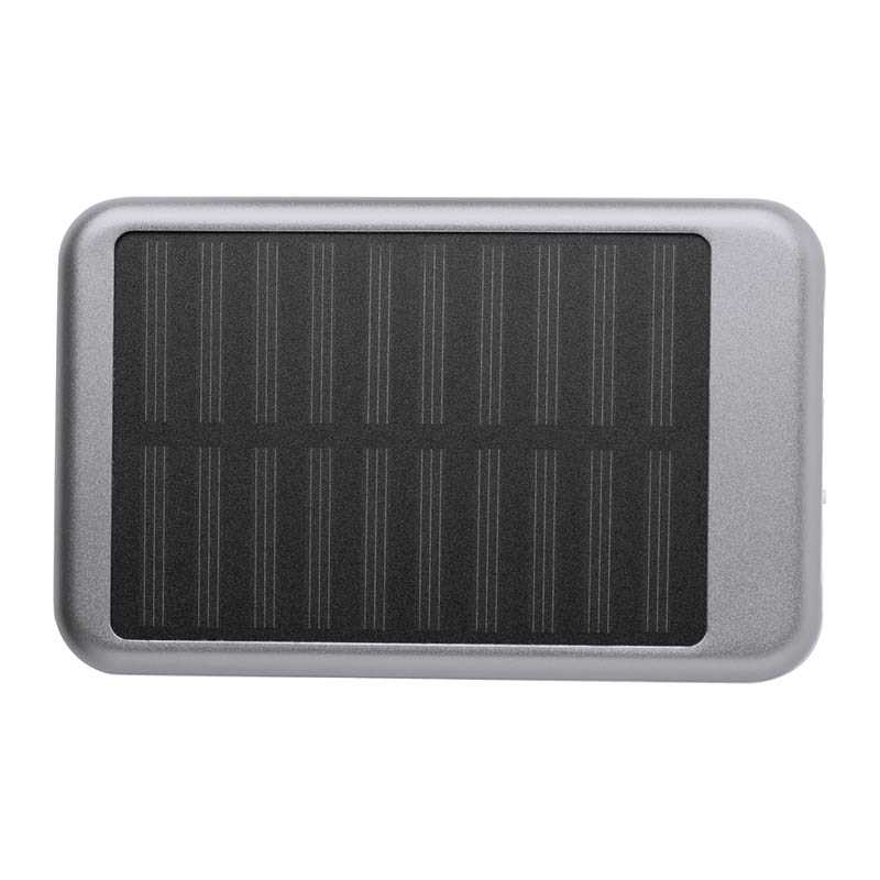 Hliníková USB power banka s 4000 mAh baterií a vestavěnou solární nabíječkou. Vč. micro USB nabíjecího kabelu.