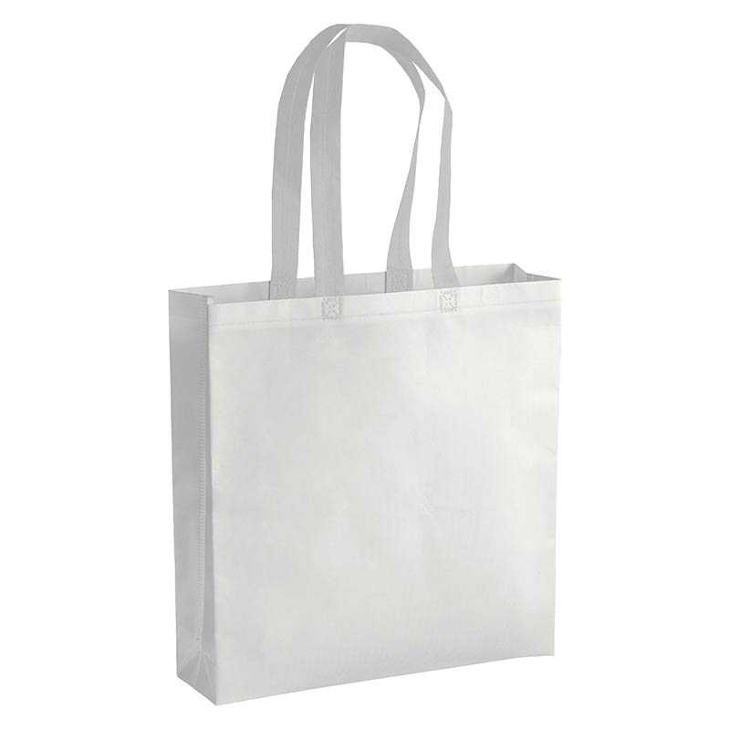 Laminated, heat-sealed 100 g/m2 non-woven fabric shopping bag with gusset and long handles
