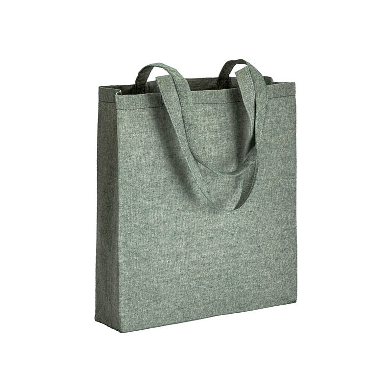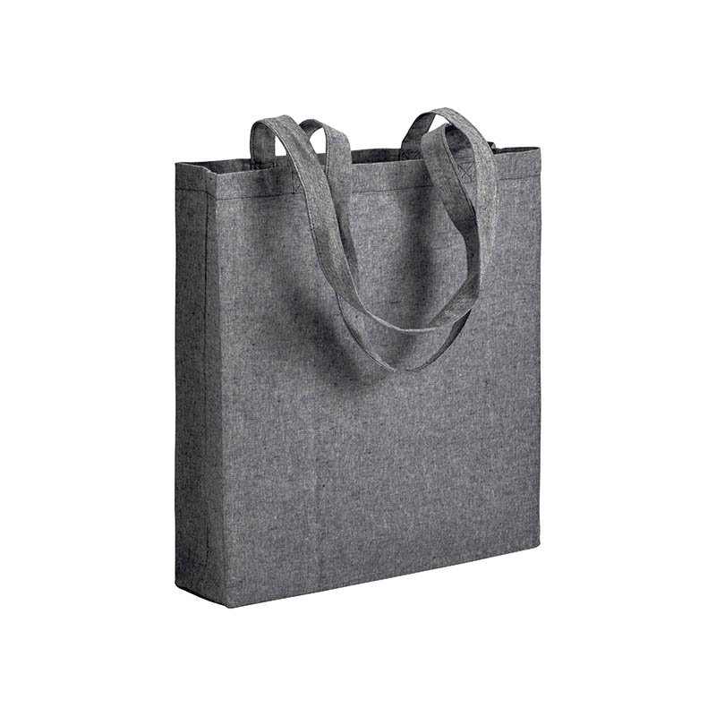 150 g/m2 recycled cotton shopping bag, melange effect, long handles and gusset